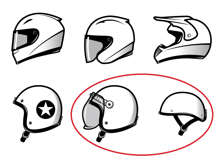 | ※ハーフヘルメットのように頭頂部だけを覆うタイプは軽量で手軽ですが、顔が剥き出しになっているため万が一走行中に飛んでくる飛来物の対策にはなりません。 |