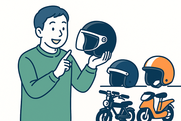 もちろん石が弾いてきたり、虫が多い時期の川沿いや山沿いを免許なしの乗り物で移動する場合には、顔の保護性能が高いフルフェイスも選択肢に加えるのが良いでしょう。