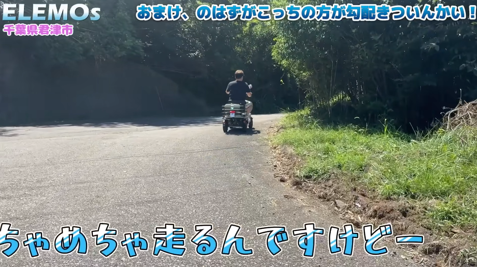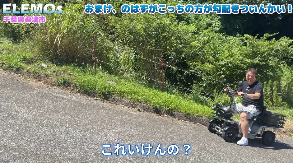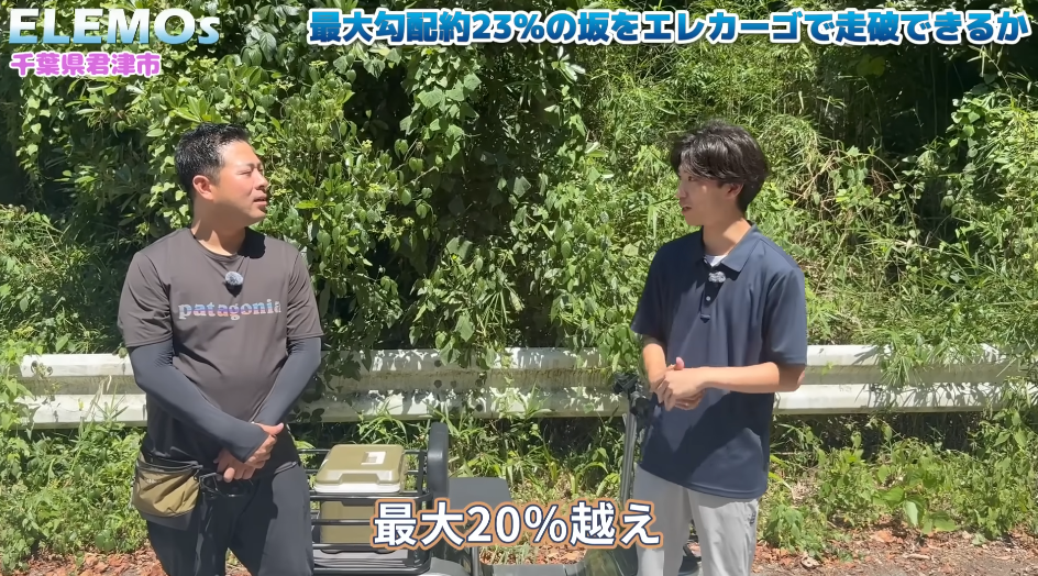 ちなみに、今回使用したエレカーゴはELEMOsの車両ラインナップの中では車重が重いため坂道を上るには不利な車体条件。