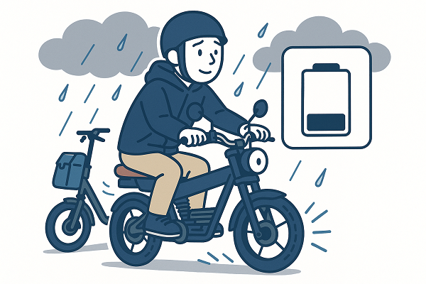 電動モペットは屋根のない乗り物であるため、雨や風、雪といった悪天候の影響をもろに受けてしまいます。。