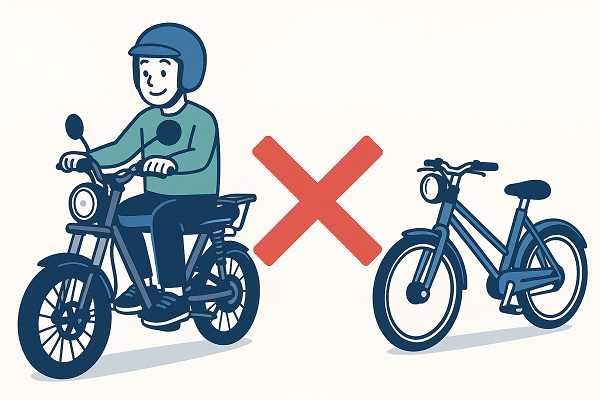 要は自転車のような見た目をしているだけで、一般的な原付バイクとほとんど変わらない乗り物なのです。