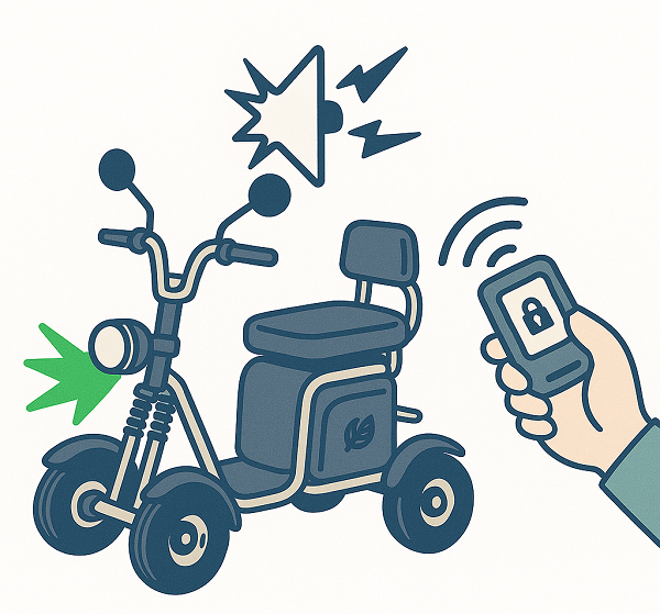 特定小型四輪において、音と光による警告機能は強力な防犯手段です。
