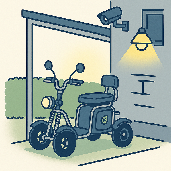 特定小型四輪の盗難を防ぐうえで、最も基本でありながら効果が高いのが「保管環境の見直し」なのです。
