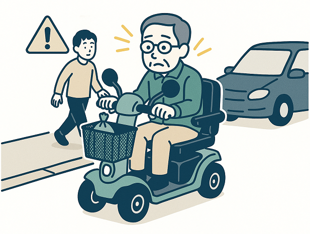 シニアカーは歩行者扱いですが、利用時は車両同様「かもしれない運転」を意識することが大切です。