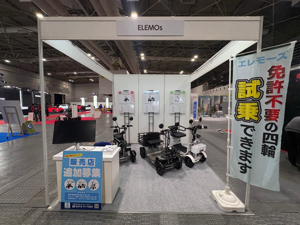 当社ELEMOs合同会社は2025年11月2日~11月5日の期間で出展。展示ブースでは、『免許不要で走れる自由』をテーマに、当社が展開する特定小型四輪3車種を展示しました。