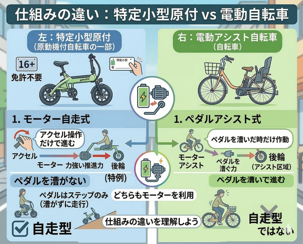 特定小型原付と電動自転車は、どちらも見た目がよく似ているため「同じタイプの乗り物」として誤解されることもあります。