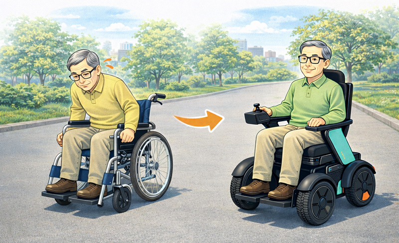 そこで必要となるのが電動車椅子。体力的な負担を和らげて自立した生活を支える重要な移動手段です。