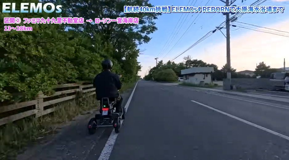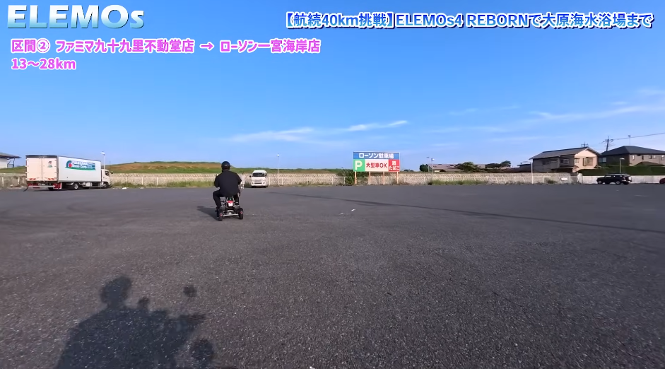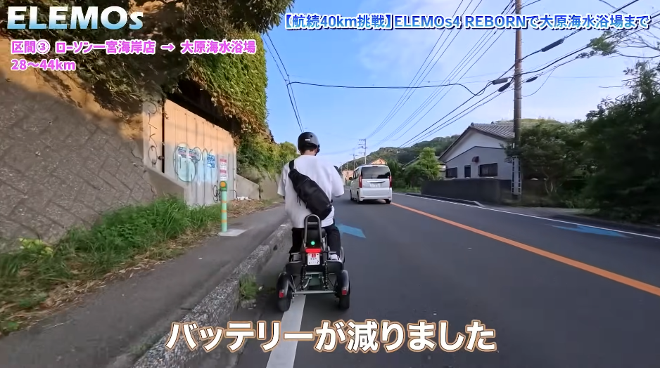 今回はカタログ値で航続距離40kmの車両で実際に40km先まで充電なしで辿り着けるのか試してきました。