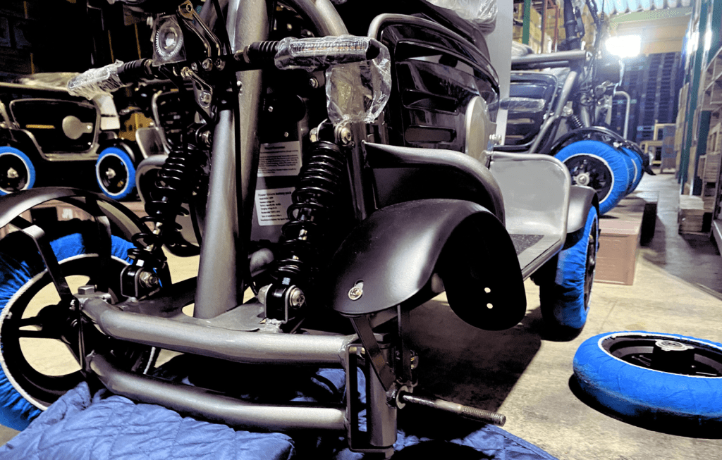 しかし、時速20kmと侮るなかれ。はじめて試乗されたほとんどの方が「速い」と体感されます。だからこそ車体の挙動を制御するサスペンションは欠かせません。