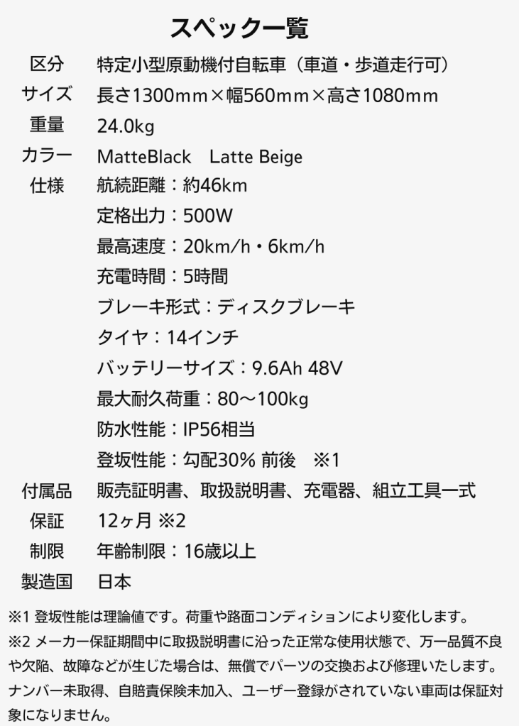 |免許不要・ヘルメット着用努力義務・公道走行可能