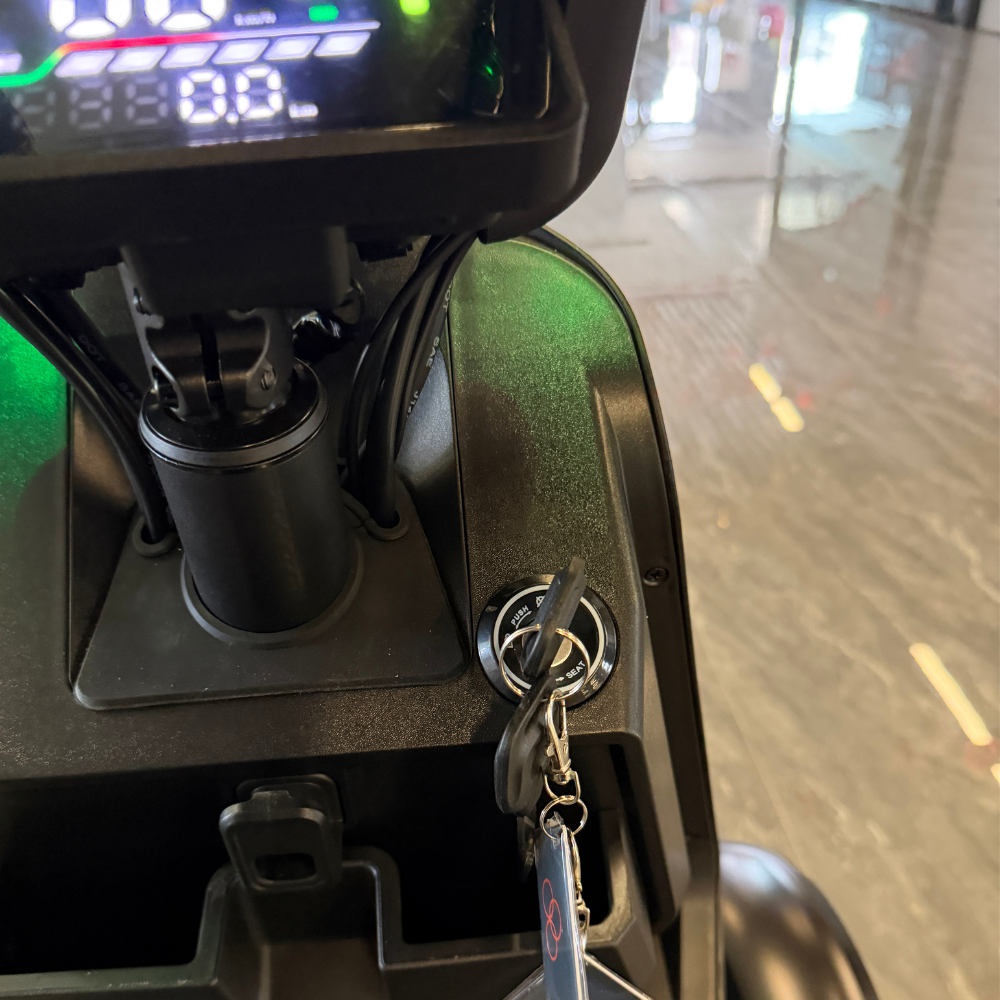 人間工学に基づいた背面の角度と長時間乗っても疲れない適度な硬さと包み込む質感のシートは、まさにラグジュアリーEV四輪。前後にシートを移動することも可能で乗る方の体格を選びません。