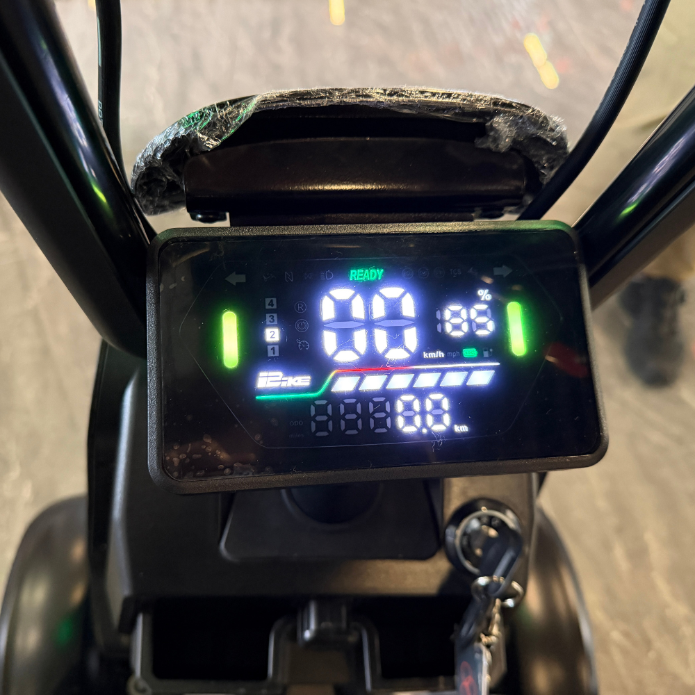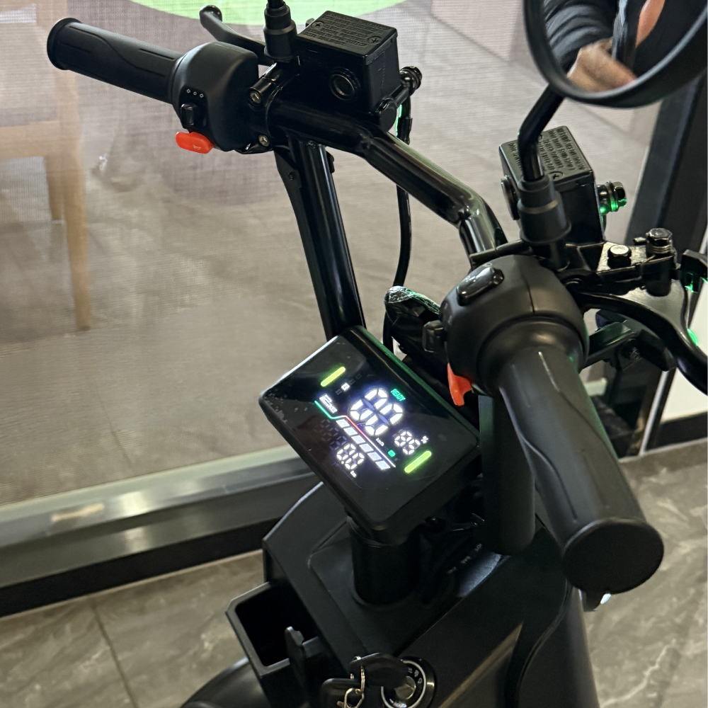 ボタンを長押しで電源ON/OFF、二度押しでモード切替。ハンドルに取り付ける液晶モニターを通じて、走行速度、電池残量などの情報を確認できます。20km/hモードは車道を走行し、6km/hモードは歩道を走行できます。夜でも十分明るいヘッドライト、50m先から確認できるウィンカーを搭載。安全に走行するための設計が標準装備。