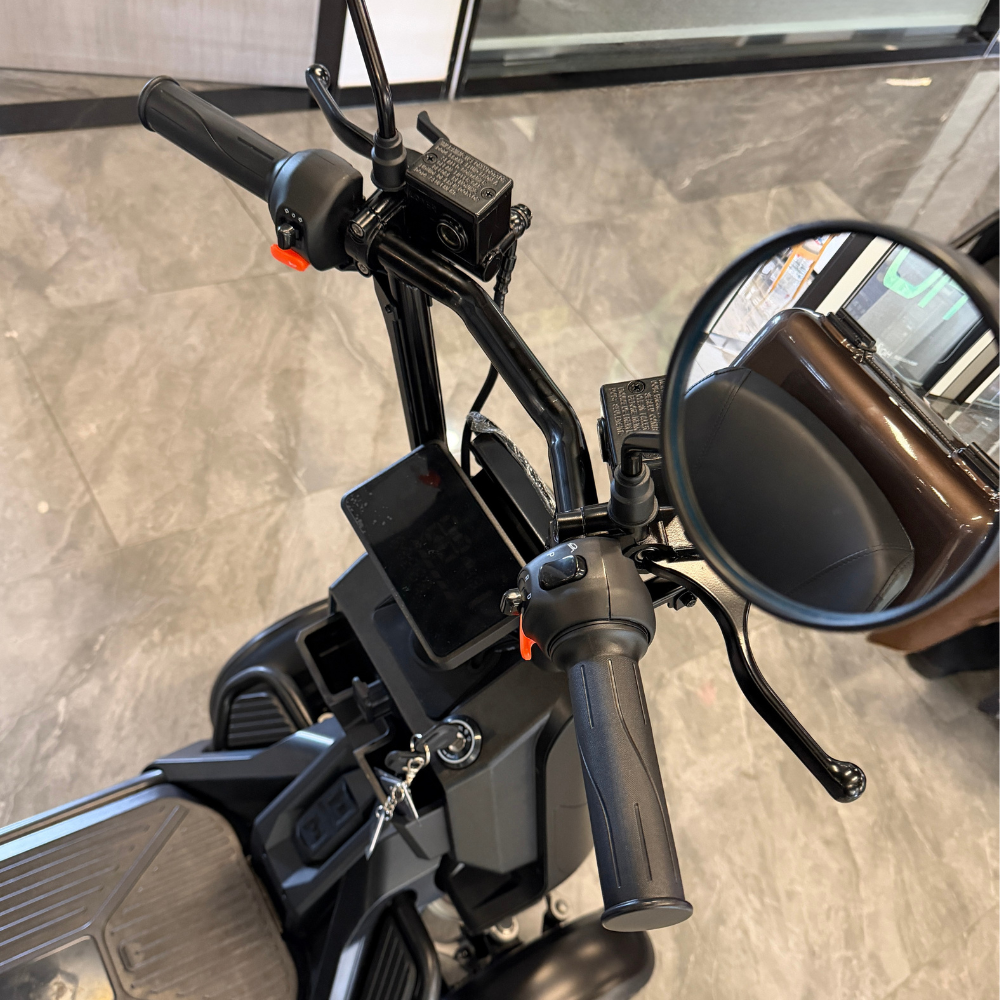 EV特有の静粛性はエンジンもガソリンも使わないインホイールモーターの特徴でもあります。特定小型最高レベルの後輪500W(250W×2)ツインモーターの走り出しは滑らかそのものですし、勾配30%の坂道を走破できるようなパワーも兼ね備えています。